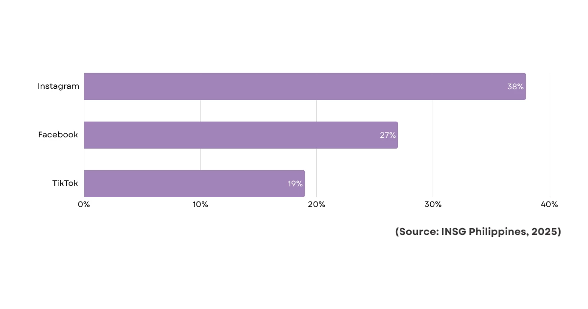 Not all social media platforms deliver the same results. Agencies should focus on where Filipino audiences engage most: Instagram (37.7 %), Facebook (27.4 %), and TikTok (18.9 %) are the top platforms for influencer campaigns, providing the greatest reach and engagement potential. (INSG Philippines, 2025)