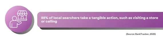 - 88% of local searchers take a tangible action, whether visiting the store or calling, ensuring high ROI for optimized local campaigns