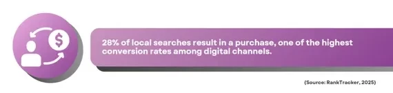 - 28% of local searches result in a purchase, one of the highest conversion rates among digital channels.