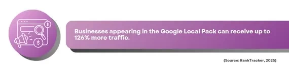 - Businesses appearing in the Google Local Pack can receive up to 126% more traffic than lower-ranked competitors.